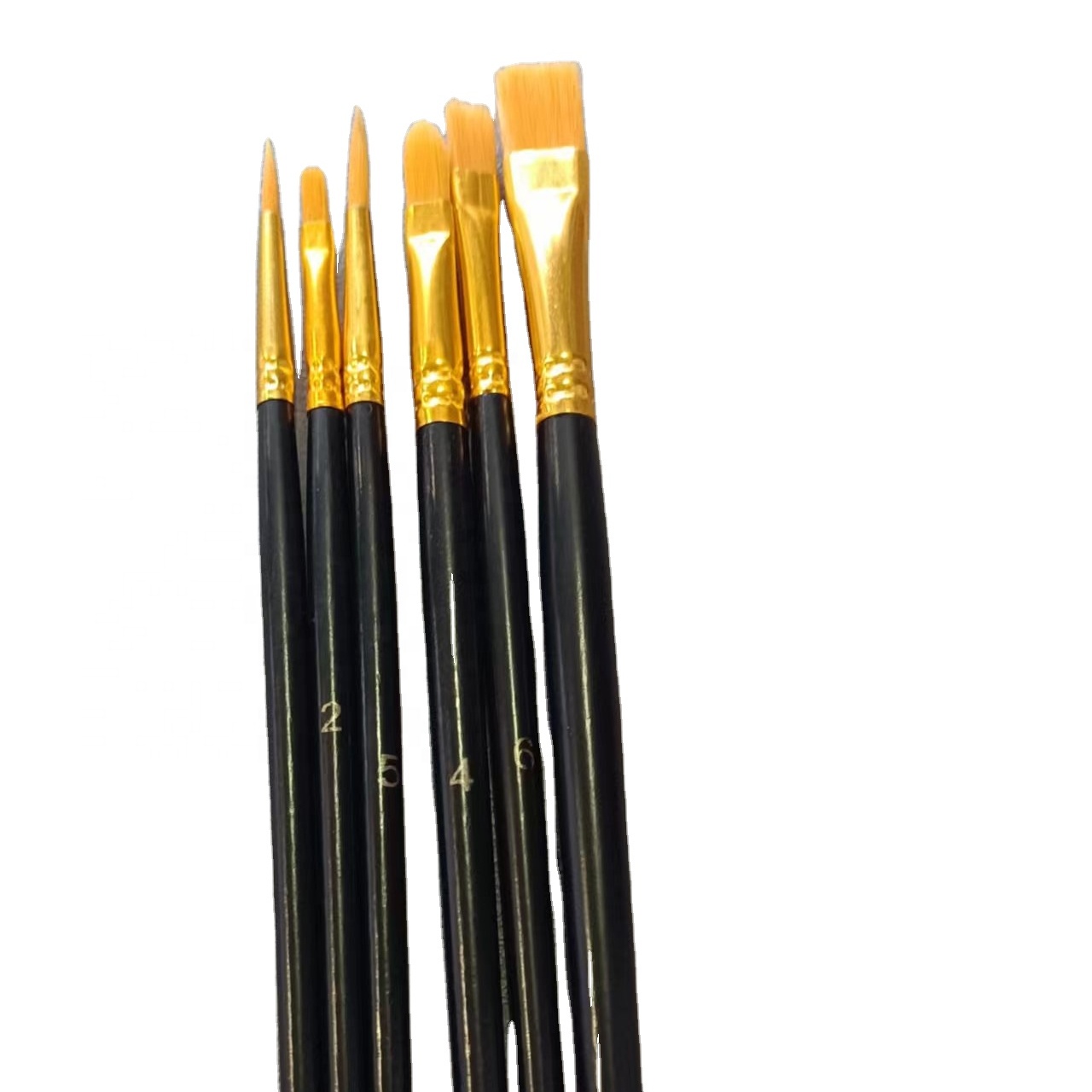 우리 공장에서 6개 페인트 브러시 세트 수채화 브러시를 구입하시면 안심하실 수 있습니다. 6가지 크기의 다기능 브러시는 모양이 다양하여 색상 혼합이 더 쉬워지며 모든 수준의 예술가, 학생, 청소년, 어린이 및 화가에게 매우 적합합니다. 그림을 좋아하는 친구와 가족을 위한 멋진 선물 아이디어!